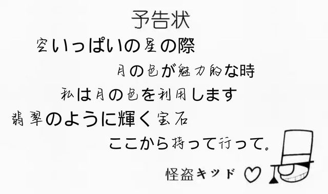 只是没过多久,一名男子突然拿着一张卡片大喊怪盗基德来了。