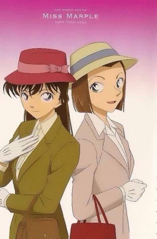 铃木园子则是一身浅灰色风衣,里面也是和毛利兰一样的同色系内搭,戴着浅绿色的帽子挎着红色的包,很是淑女。