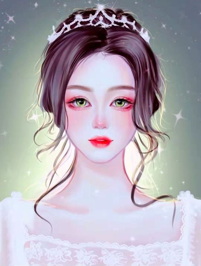 等化好妆,柒柒把皇冠给慕婷戴上,还有头纱。