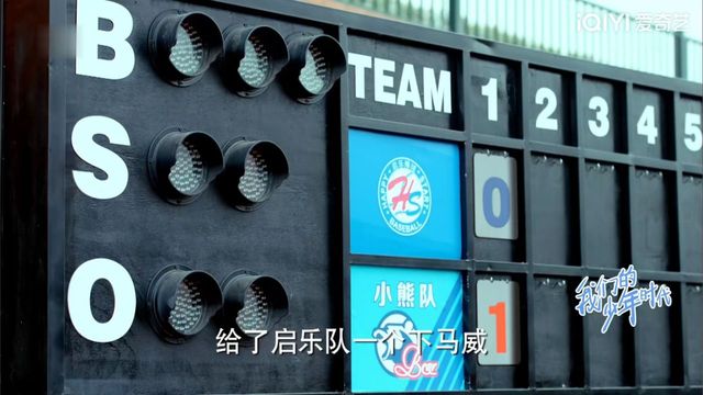 启乐队第二棒上场,邬童投出一球,球跟棒球棒碰撞,发出了清脆的响声,见球打中,启乐队队员扔下球棒,朝一垒跑去。