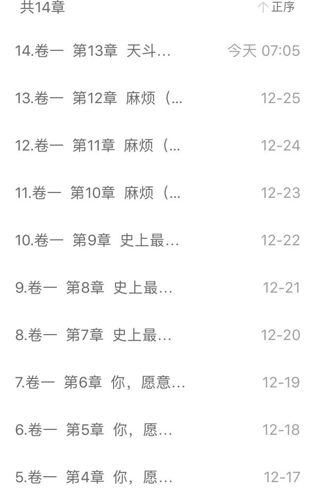作者“可以看到我是每天一章从没断过。每天都是7:05整发布,有规律。可能你们会说更新的太少了,可我目前还没有那么多的存稿支撑我每天三更或者是两更。我只能保证每天一更很抱歉。现在看的人少,等下个月每天两更OK?”