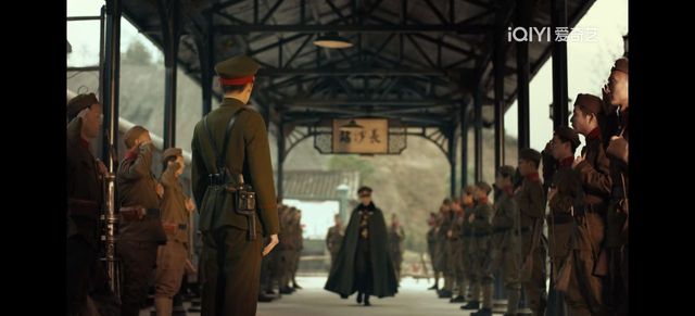 两列士兵整齐划一的排列在两边,一身军装的男人气场霸道又冷漠,身后的女子一身青色旗袍妩媚多情