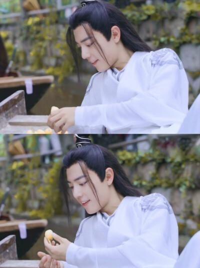 小眼神瞟着前方,如树屹立的蓝忘机,等着他伸手接枇杷,结果……
