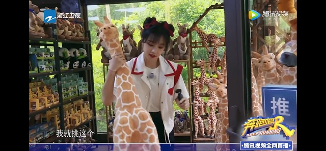 蔡徐坤在车门旁等着想扶一下七七来了,结果看都没看她,拉着李沁就往前面冲,在门口遇到了导游,导游带领大家参观,路过了一个创意工坊,里面有很多头箍,大家知乎可爱,七七已经被长颈鹿抱枕吸引了,李沁看蔡徐坤一个人在那看,就拿着头箍走过让他带一下,说她想看,肯定很帅的