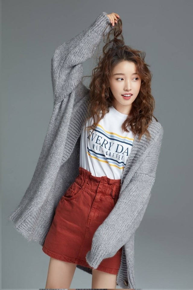 现在天气转暖了,沫沫今天上身穿了一件宽松的短袖,下半身搭配版型很正的A字裙,直接下衣失踪。高腰的设计显得腿很长很直脚上穿了绿色的高帮帆布鞋。出门前又搭了一件灰色的毛衣披肩小外套,更加衬托出她一等一的绝佳身材。