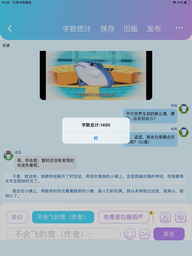 不会飞的莺(作者)(无视老鹰)今天更了约一千多字,但并不是每章都能更这么多😭