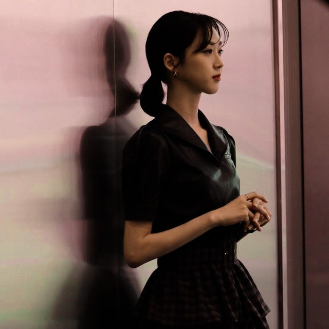 她一身黑衣,将身材勾勒得格外美好。
