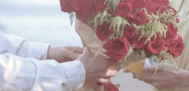 我抱着和上次一样的玫瑰花束,笑的合不拢嘴。