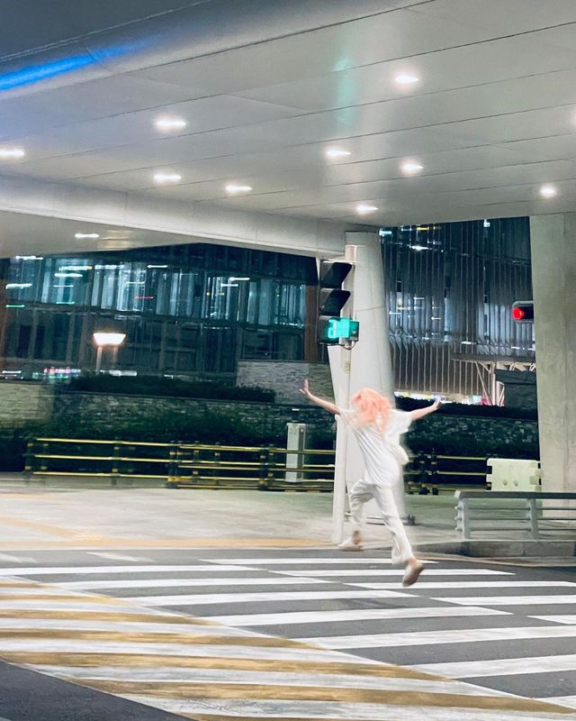 你去到了酒店换了一件衣服就去拍照逛街了