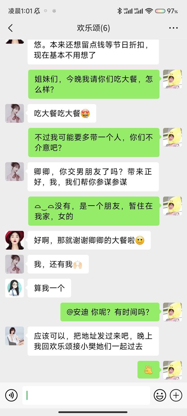 邱莹莹谢谢卿卿啊,请我们吃这么好吃的大餐