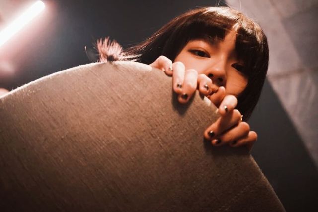 少女从沙发上探出了头似笑非笑的看着你。