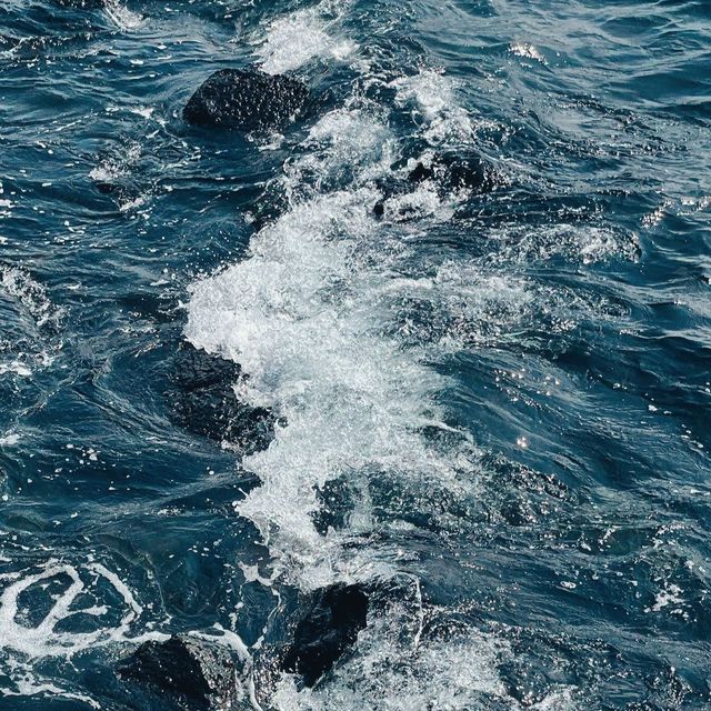 你面迎着咸湿的海风,如海藻般的长发随着张扬的舞动着,你往下一看,湛蓝的海水表面水波粼粼,金光灿灿。