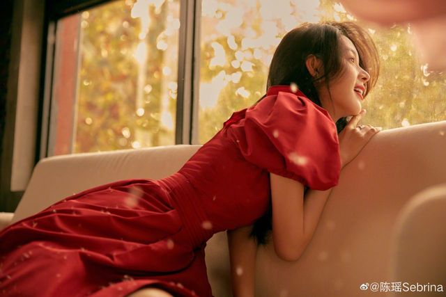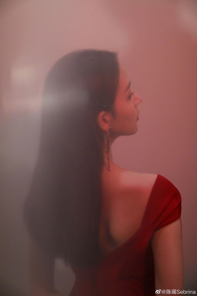 过了一会儿,拍摄就开始了。一站到镜头前,西门苑进入状态,穿着红色连衣裙,摆着各种poss。