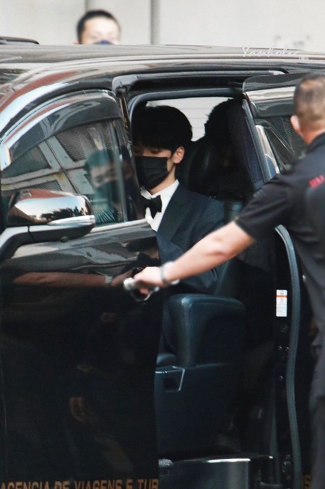 你听到人群的叫喊声后便透过车窗望去,只见他们西装革履的走出大门
