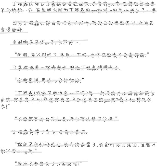 那时的ta们既是对手也是兄di。丁程鑫是团队里的大ge,必然要管着大家,看着丁程鑫这样xin苦的付出,马嘉祺能为ta分担多少是多少。