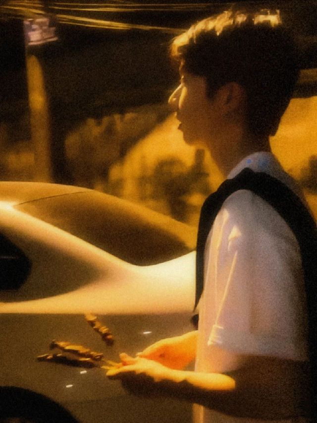 “夜深人静,微风拂过绿叶沙沙作响,属于夏天的晚风中,暖黄色的路灯下,熟悉的味道里,山城中,万籁俱寂的一条小路上,两汪深情似水的眼睛开始发红,神情柔美似月光般轻盈。不知对上那玻璃般易碎的盈盈双瞳已经多久了。两位少年终于奔赴彼此,与许久不见的那个心爱的人深情相拥。”