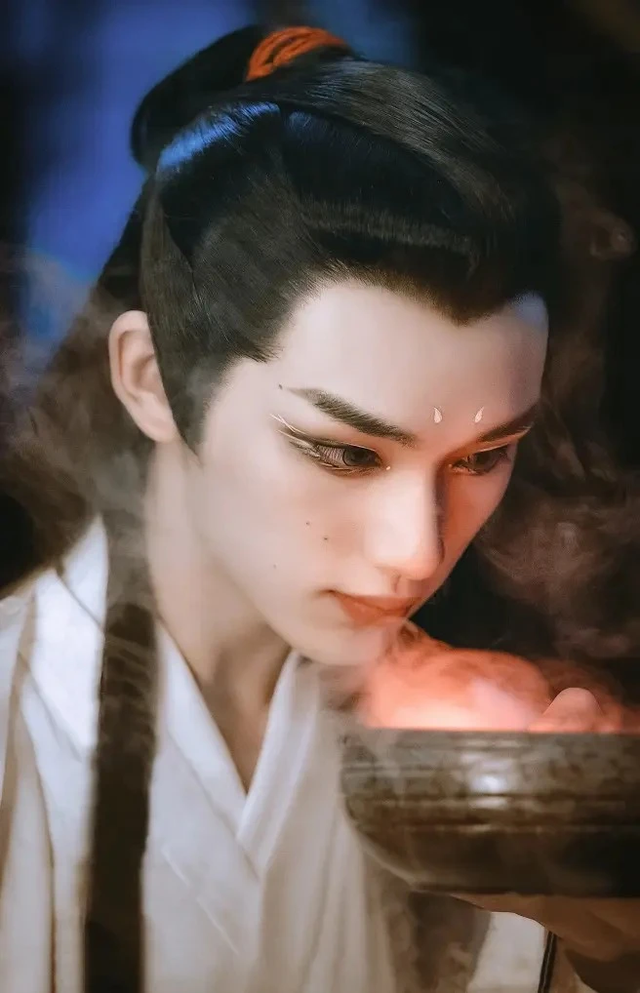 马嘉祺身着一袭淡雅的蓝色古装,布料轻薄而柔软,仿佛是天空中最柔和的一部分云朵。衣袖随他的动作轻轻摆动。