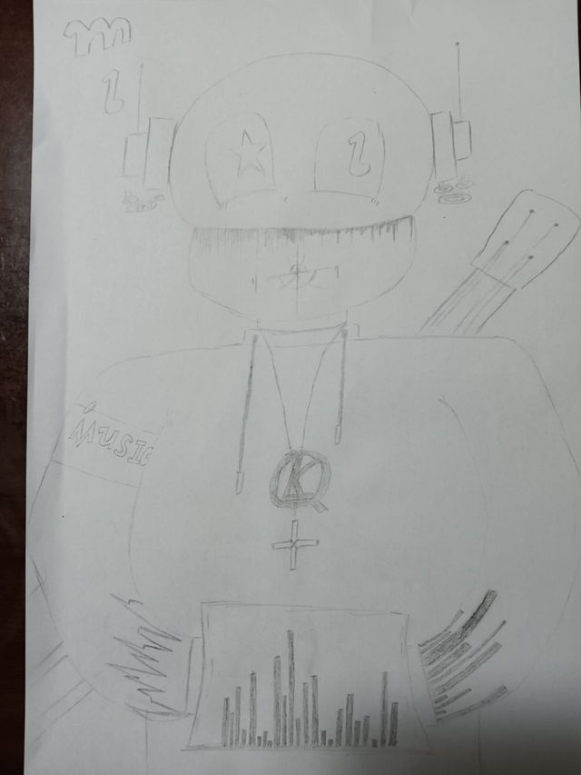 一只带着耳机,穿着黑白相间的卫衣,身后还背着一把吉他的骨开口问道。