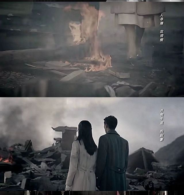 随后,日本人的轰炸机不断徘徊在上空中,原本往日热闹的家,只剩下一片废墟