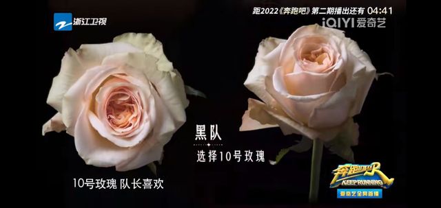 而毛晓彤她的白队则选了九号玫瑰,她比较喜欢的颜色。