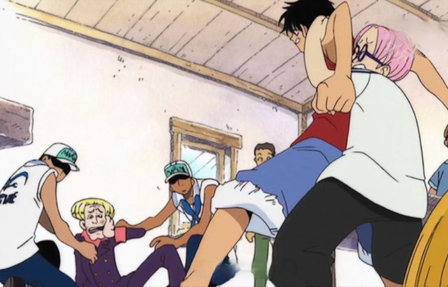 克比全力拉着路飞“路飞先生,你冷静点,你想与海军为敌吗?”