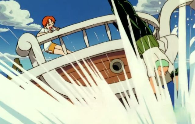 浪花差一点就掀翻了黄金梅丽号,与此同时,知道可可与路飞同是恶魔果实能力者的索隆,抢先一步跳下海去。