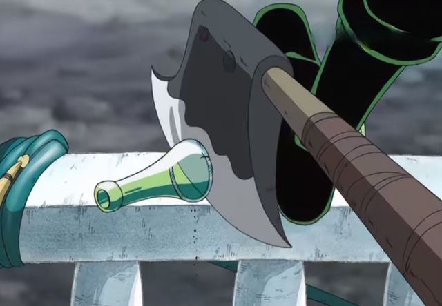 瓶口被索隆用宣花板斧给完完整整的切断了,切口平整,看不出是用斧子且的,那跟切肉没什么两样啊!索隆也不愧是索隆,不管是刀子还是斧头,只要是锋利的东西,都能被他玩的非常好,最强的剑士,他一定可以做到的,也只有他能够做到。