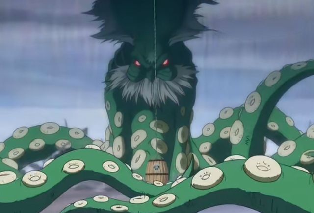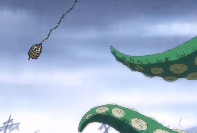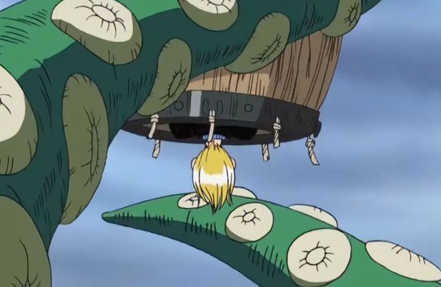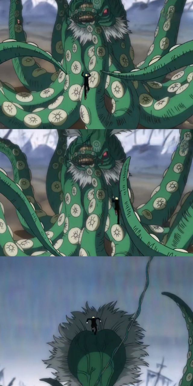 还没有得意几秒钟,章鱼的一只触角就缠住了山治。