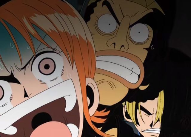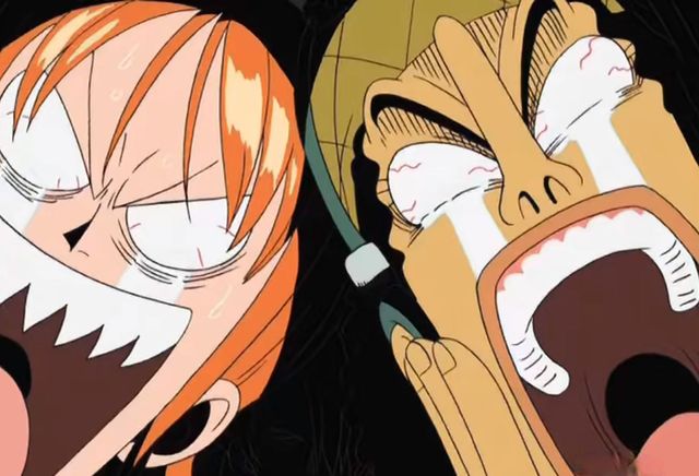 娜美和乌索普简直是吓死了,娜美整个人汗毛竖起,瞬间变成鲨鱼脸。