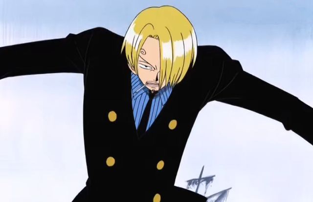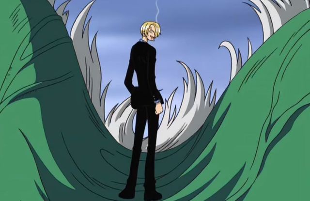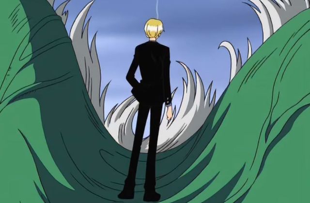 文斯莫克·山治站在那怪物的头上点了一支烟