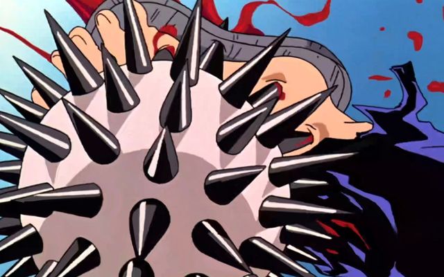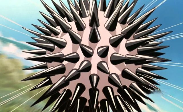 山治一个扫堂腿踢过去,本以为可以解决的,但是那个球体突然间爆出很多的尖刺。