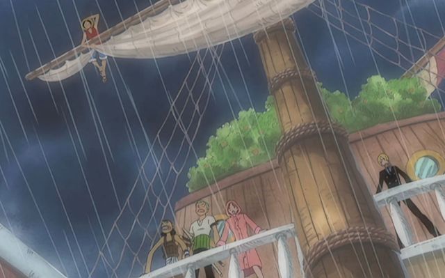 越是接近颠倒山,水流越是湍急,一个不留神,路飞就从上面给掉了下来,幸好橡胶胳膊拉着桅杆,否则真要摔下来了。