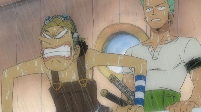 路飞肯定是相信自己选的副船长和航海士呢!于是他伸长胳膊从上面下来。