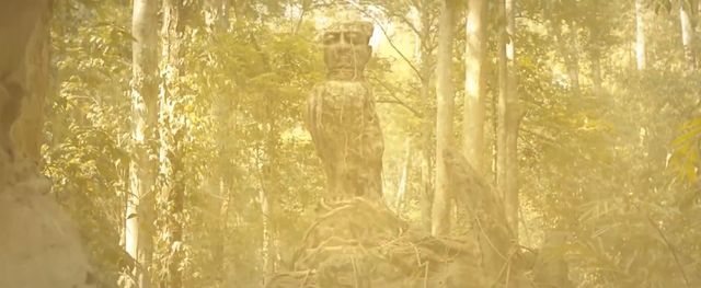 尘土渐渐散去,山石都被炸碎了,一座雕像就出现在了大家面前。