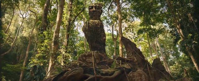 众人走近些才看得清楚,那是一尊人面鸟身的神像,大概有三四层楼的高度。鸟的头部是一张似人非人的女性怪脸,长着两对眼睛,面无表情,冷酷异常。两足下雕琢着五个骷髅头,鸟立于其中两个天灵盖上,好像这些骷髅都是它吃剩的骨骸。
