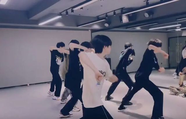 由于杨超越和他们行程不一样,所以杨超越就去隔壁的录音室唱歌了,他们七个在训练室里跳舞。