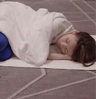 杨超越已在门口,实在困的不行了,直接躺在地上盖了一条毯子,睡着了。