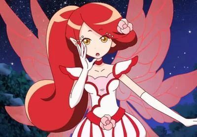 她们往声源处看去,粉蓝色的花苞中间亮起了一道光,在那光芒的照射下,长着翅膀的精灵缓缓显现,扎起的两捆蓝色长马尾,精致的白色晚礼裙缝纫上粉色花苞。