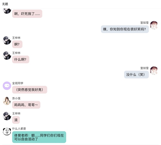什么人都是体育老师:额……同学们你们现在可以先散开自由活动了。