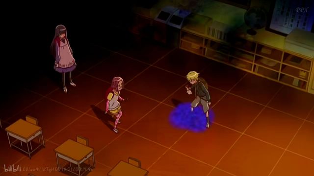 甲本翔的脚边瞬间被一团蓝雾围绕,一声刺耳的尖叫声充斥着整间教室。