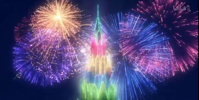 表演结束,夜空中一下子出现了烟花,原来是他们特地准备的