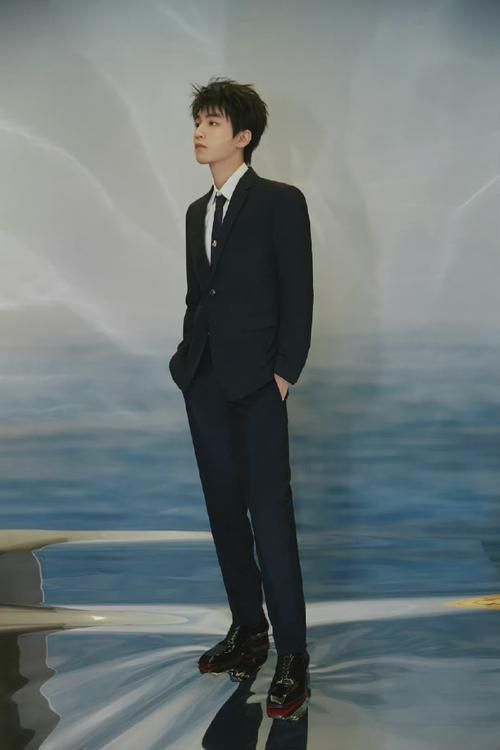 王俊凯身穿黑色西装,内穿白色西装,修长的腿没有一点赘肉,气质好到爆炸。有着霸道总裁的既视感