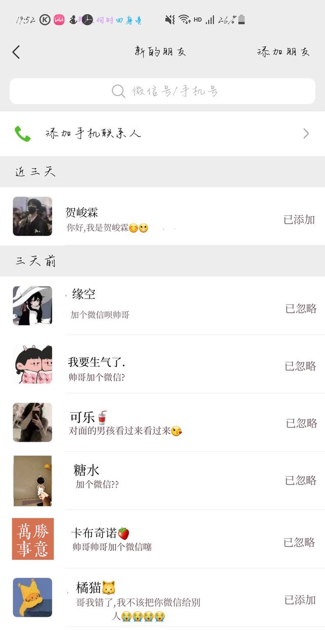 贺峻霖加上相亲对象的微信之后都默契的没有说话,本来贺峻霖想给他发消息道歉的,但是贺峻霖想看看他会不会主动给自己发消息,结果,哈,那个相亲对象在贺峻霖过了三个小时忍不住给他发消息的五个小时之后才回他。贺峻霖表示:没关系没关系,自己放了他一个小时的鸽子,对自己冷漠点没关系,但是也太冷漠了吧!