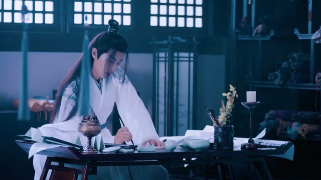 夷希微在蓝湛案旁坐下,把她的抄本往蓝湛面前推了推。蓝湛无奈,只好将看到一半的书放下,把那沓纸挪到眼前,开始一张一张地看。
