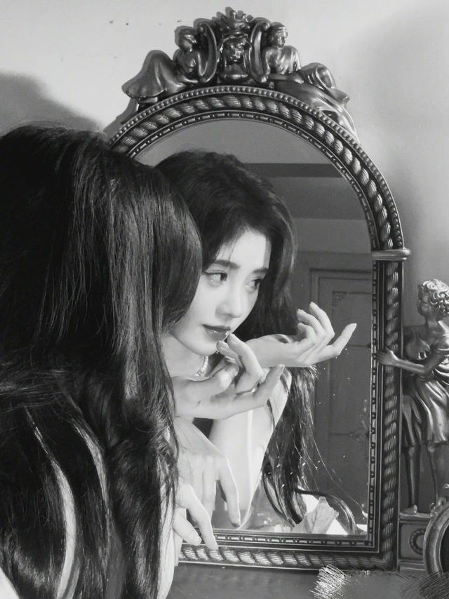 少女走到梳妆镜检查着妆容,举手投足之间都是韵味