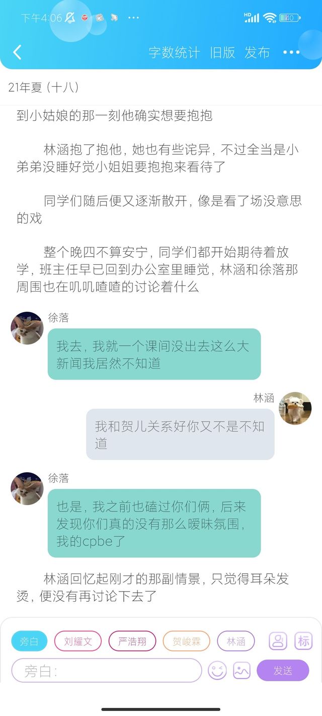林涵和徐落穿过人群在一旁的长椅上坐下聊着天