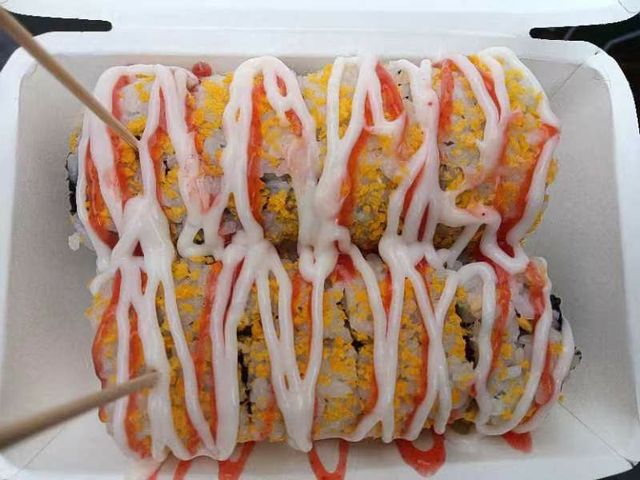 (家人们!!这不是所谓的机场里的寿司 这个是我自己的图 是我那时候出去玩 然后人家搞那个美食街 有卖 真的好吃 味道嘎嘎行 本人也非常爱吃寿司!!有没有一样的 上面的文可以代入一下我的这两个图)