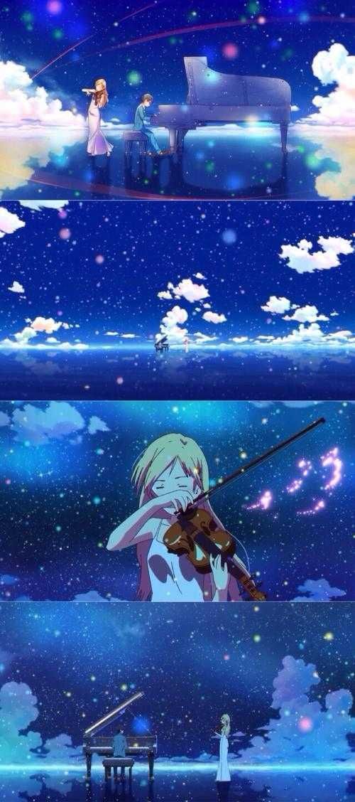 宫园薰与有马公生一起进行音乐上的演奏,她深深地喜欢着有马公生。