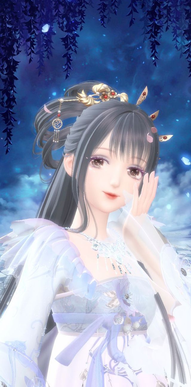 天色渐渐暗下来,岁辞换了一身白色华丽宫装,长发半挽成鬓,配以发簪坠饰,描眉染唇,为清雅的面容染上几分艳色。