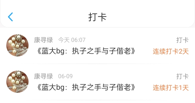 布丁感谢康寻绿宝宝的打卡~宝宝已经连续打卡两天了!爱你~